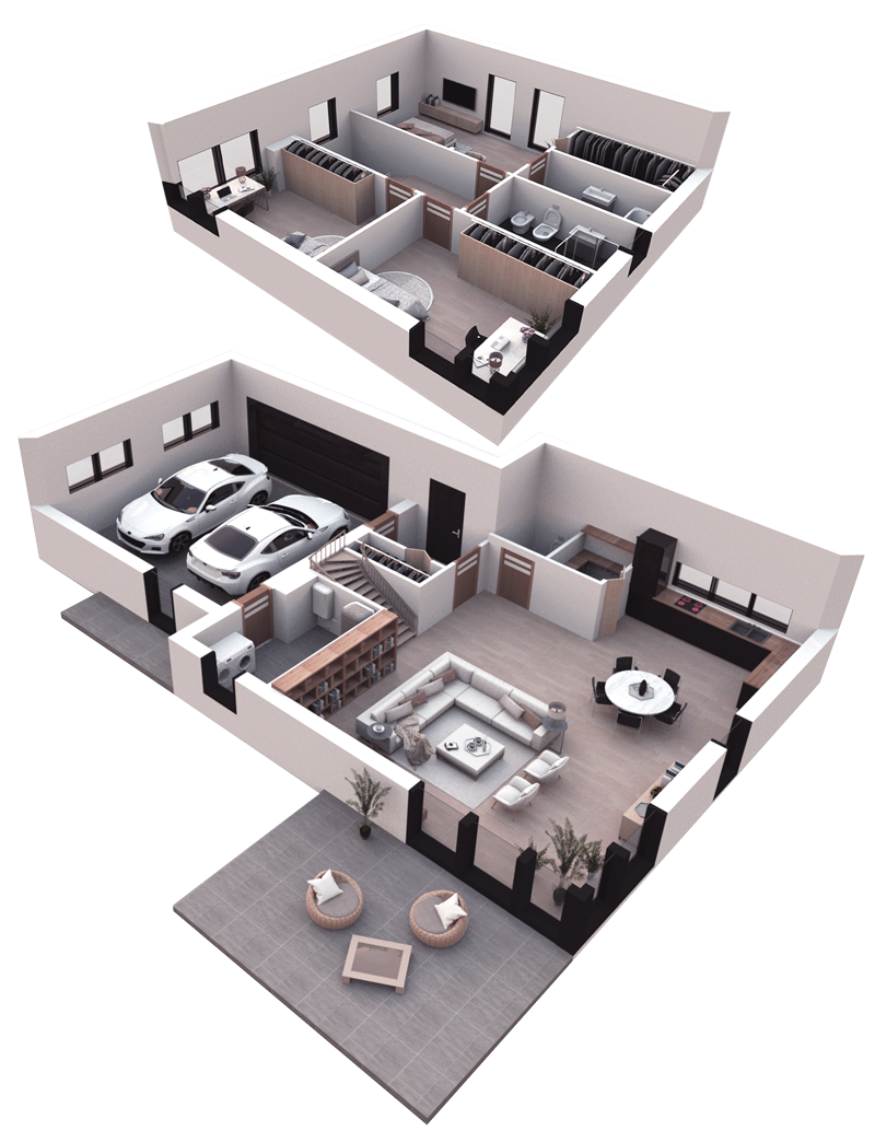 Do you have children? They’re curious, stumbling, always messing around the house, entering the places which aren’t designed for them? Then this repetitive two-storey house project is a smart decision for you.