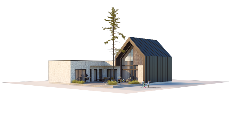 THE SWEET CUPCAKE LOFT "L" SHAPE (WITH GARAGE) frame houses are made from a lightweight thin-walled steel frame construction. They have excellent thermal and acoustic insulation and use durable and environmentally friendly building materials. Carefully considered technical characteristics and engineering solutions allow the dwellings to achieve an A++ energy performance class.